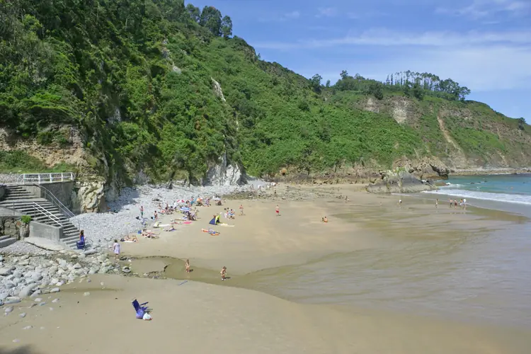 Playa de Coedo. Características. Ocupación: Baja. Longitud aproximada: 100 m Accesos: Rodados. Servicios: Aparcamiento: Sí. Socorrismo: No. Material: Arena gruesa. Color: Oscuro. Forma: Ensenada. Desembocadura fluvial: Arroyo. Entorno: ..